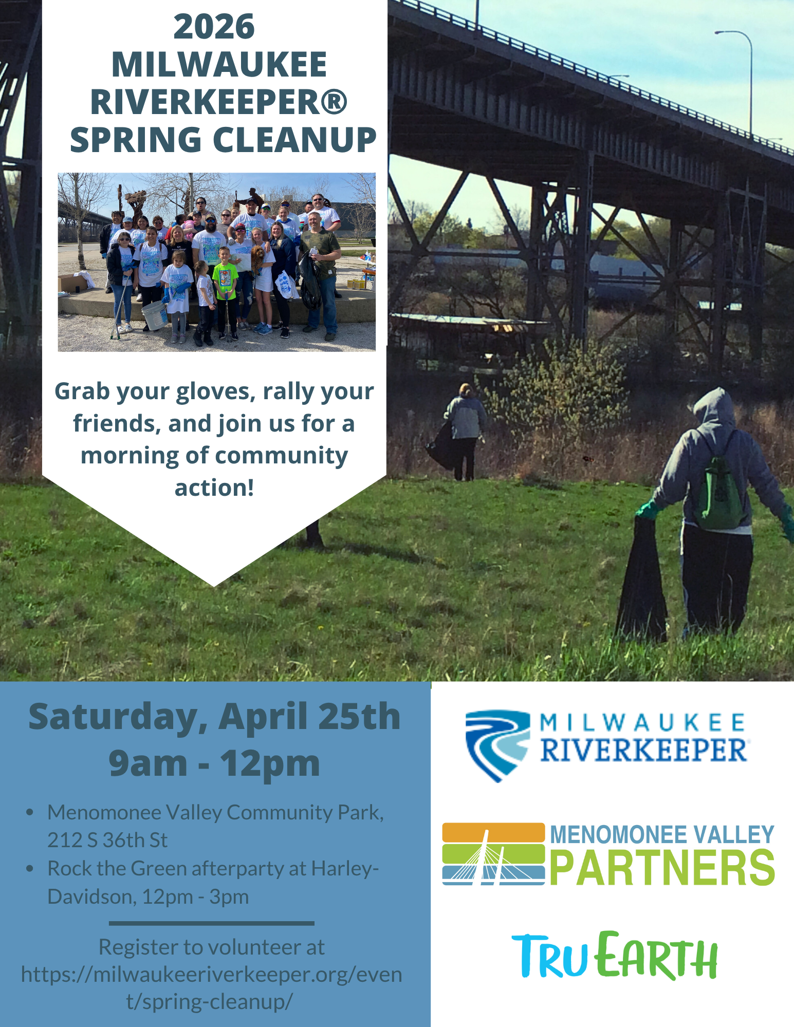 Feel free to reach out to Paige Pietras (Paige@TheValleyMKE.org) with any MVP site questions, or Milwaukee Riverkeeper (rivercleanup@milwaukeeriverkeeper.org) for general Spring Cleanup questions.