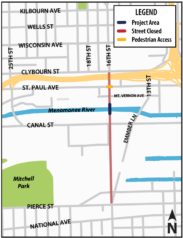 This unexpected closure is due to an urgent public safety issue caused by a deteriorated structural beam. The issue was discovered during an in-depth inspection conducted as part of a reconstruction project for the portion of the 16th Street Bridge over the Menomonee River.